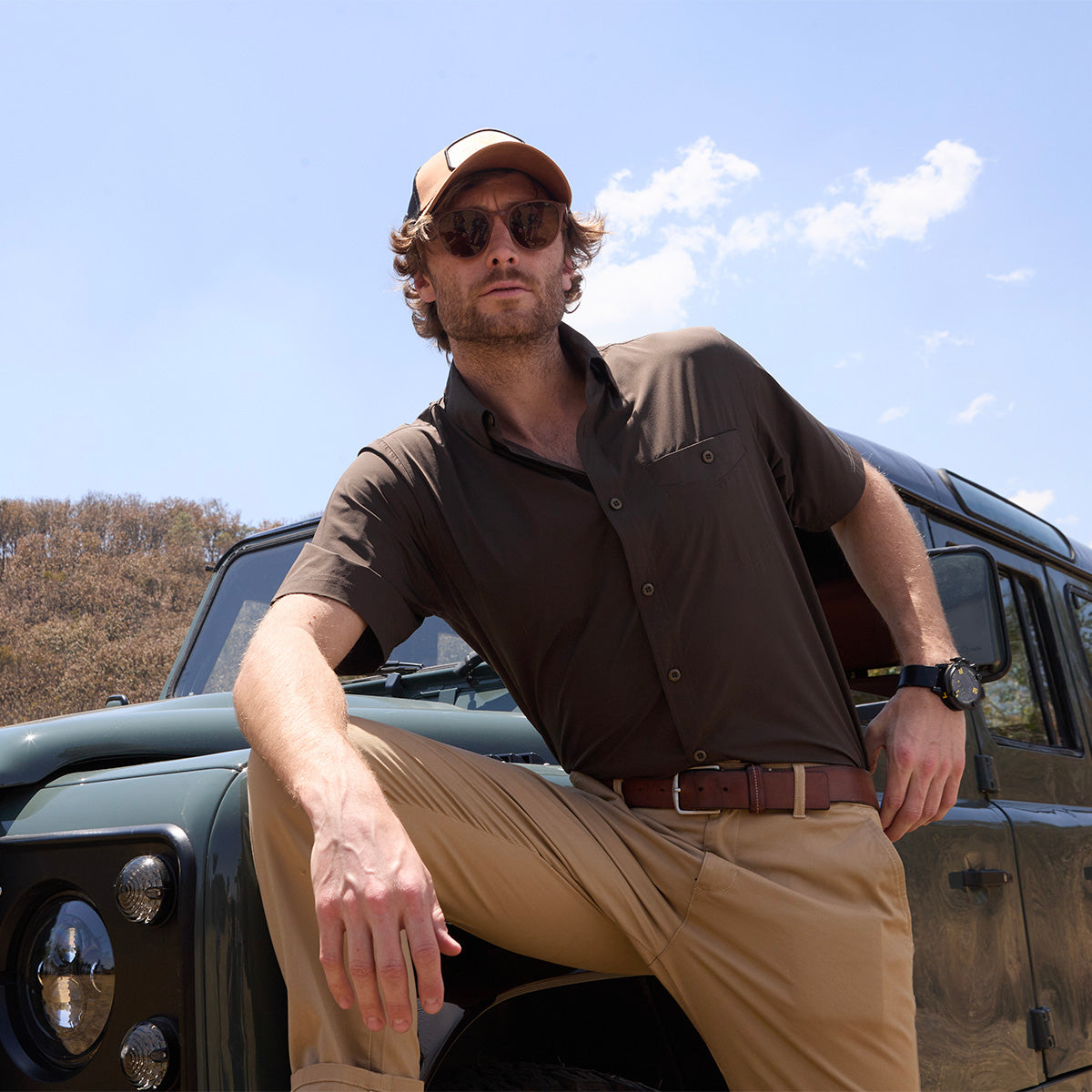 Camisa Explorer Manga Corta Hombre Café Alto Rendimiento