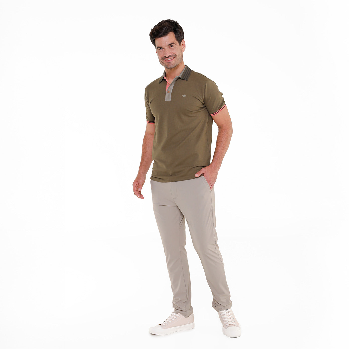 Un polo con carácter y elegancia moderna, gracias a su combinación de verde profundo con acentos vino.