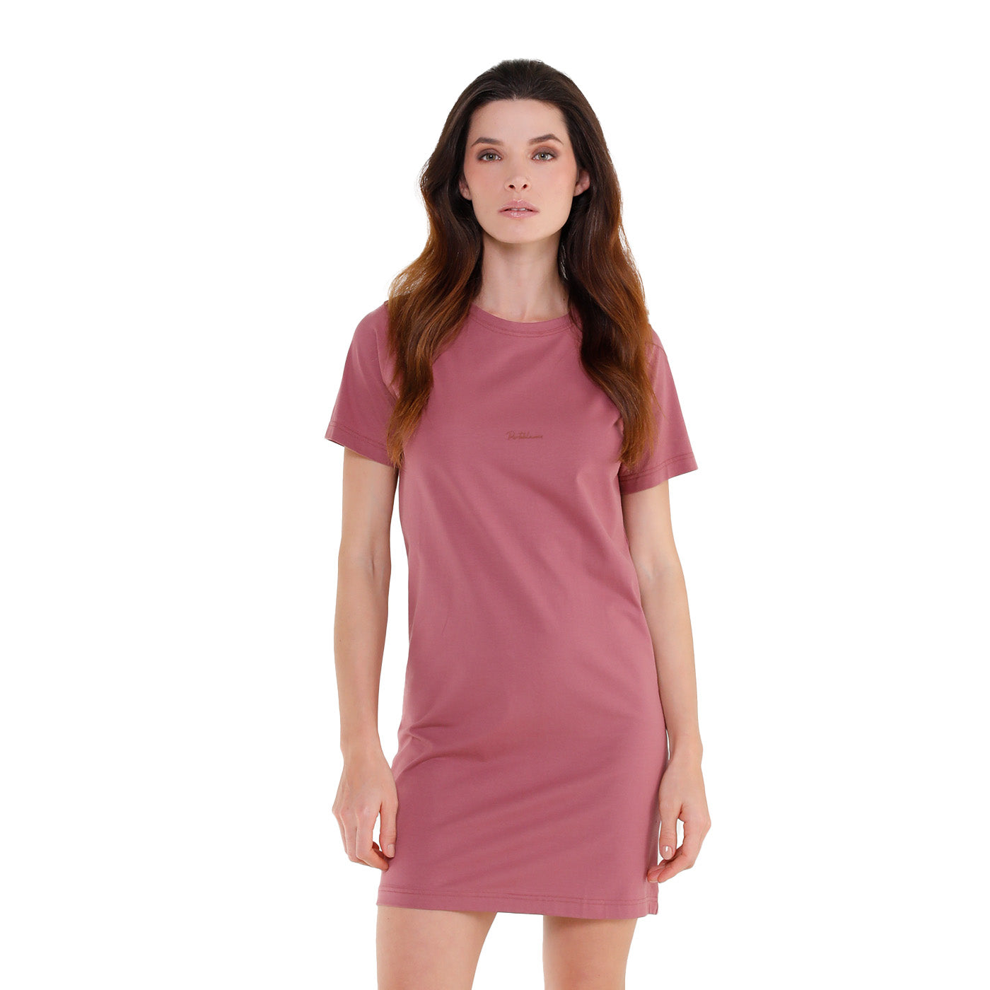 Comodidad absoluta y estilo minimalista se encuentran en este vestido tipo T-shirt de Porto Blanco. Diseñado para el día a día, su silueta relajada y su color verde oscuro lo convierten en una prenda versátil que puedes llevar desde una salida casual hasta un look cómodo y moderno para la ciudad.