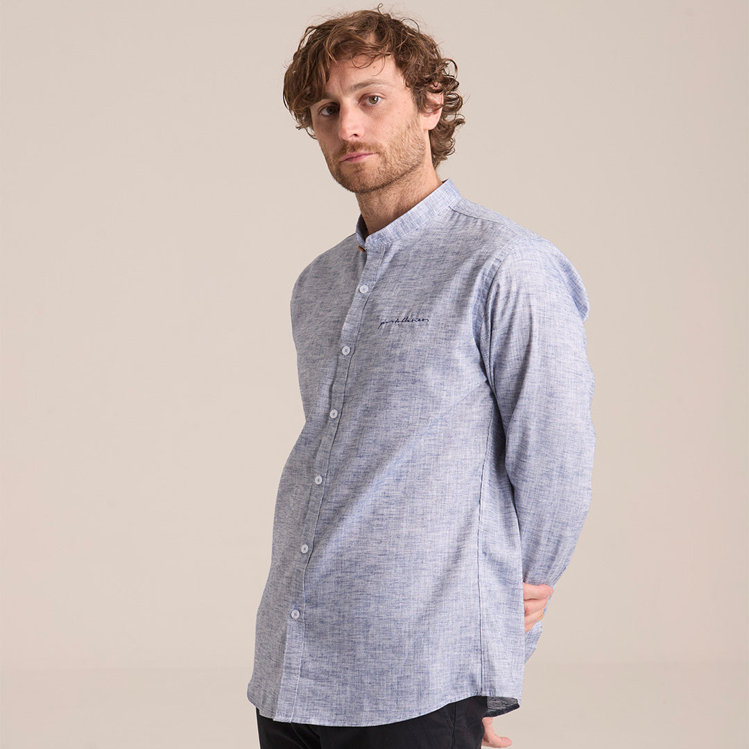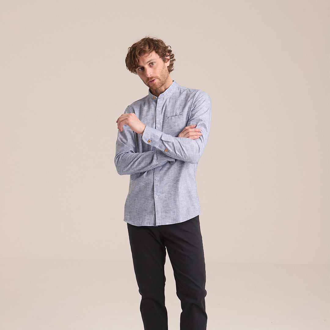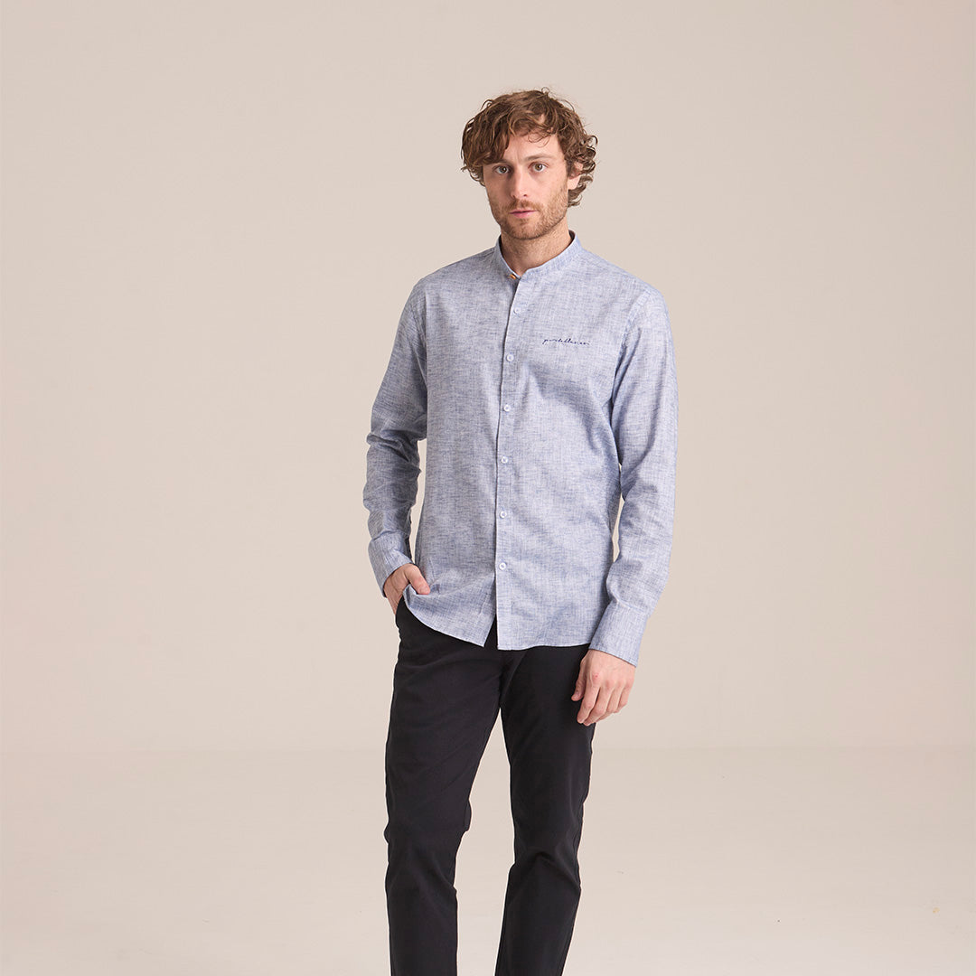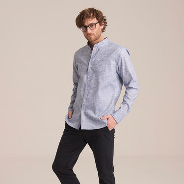 Camisa Azul Grisáceo Mao Manga Larga Hombre