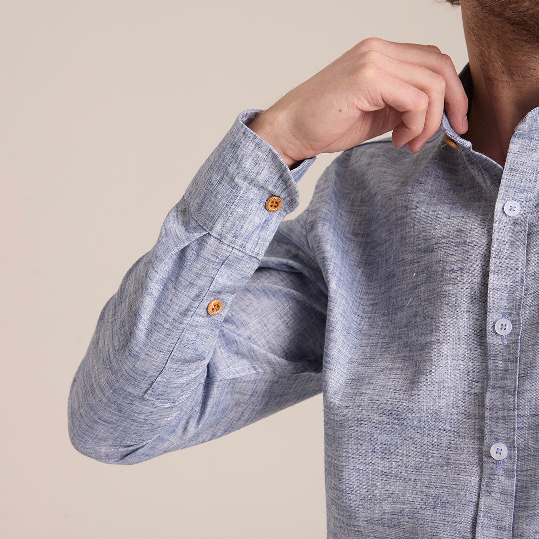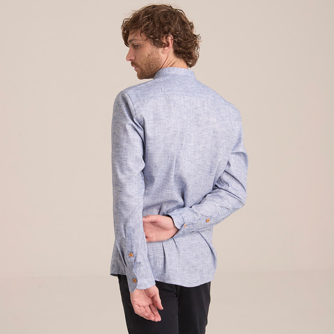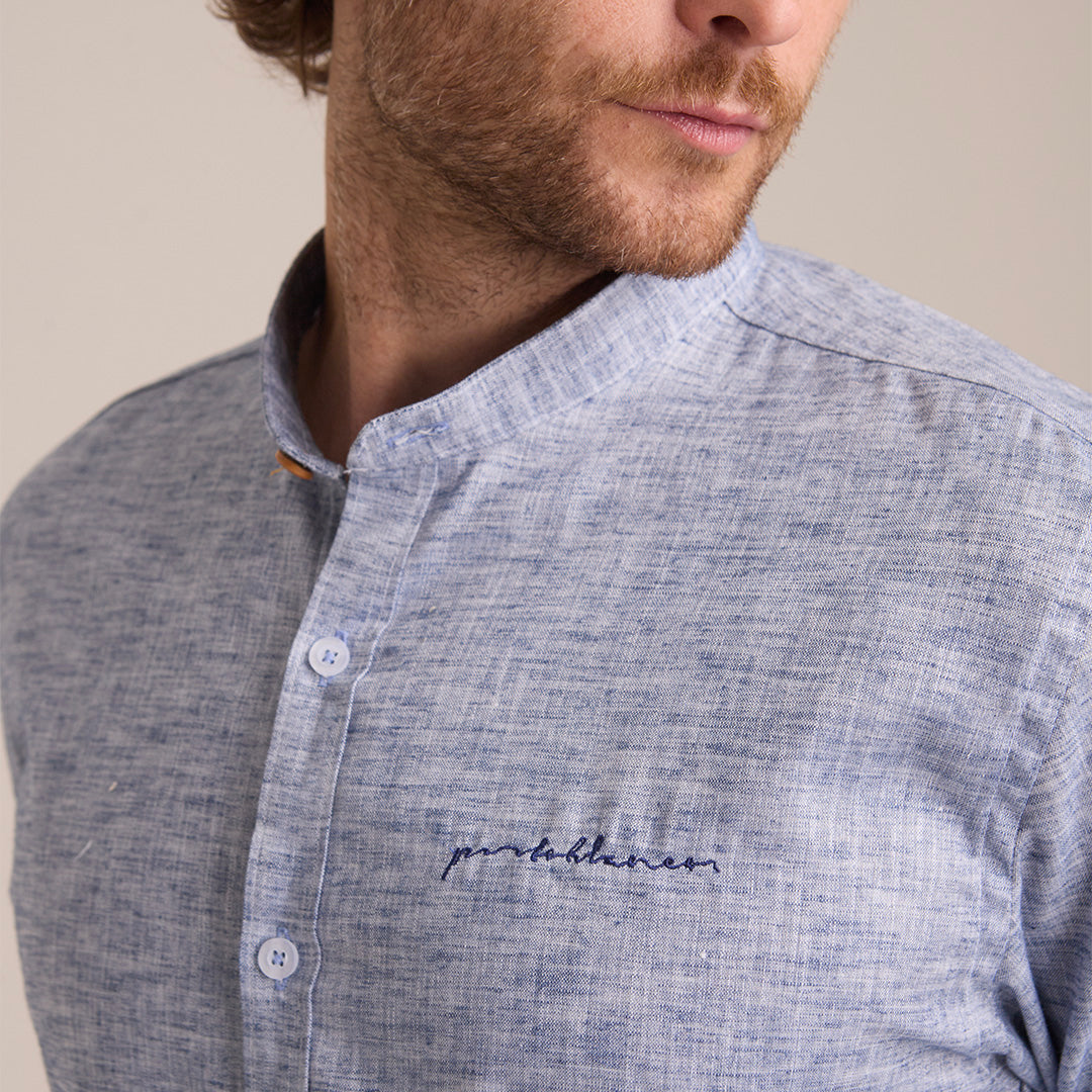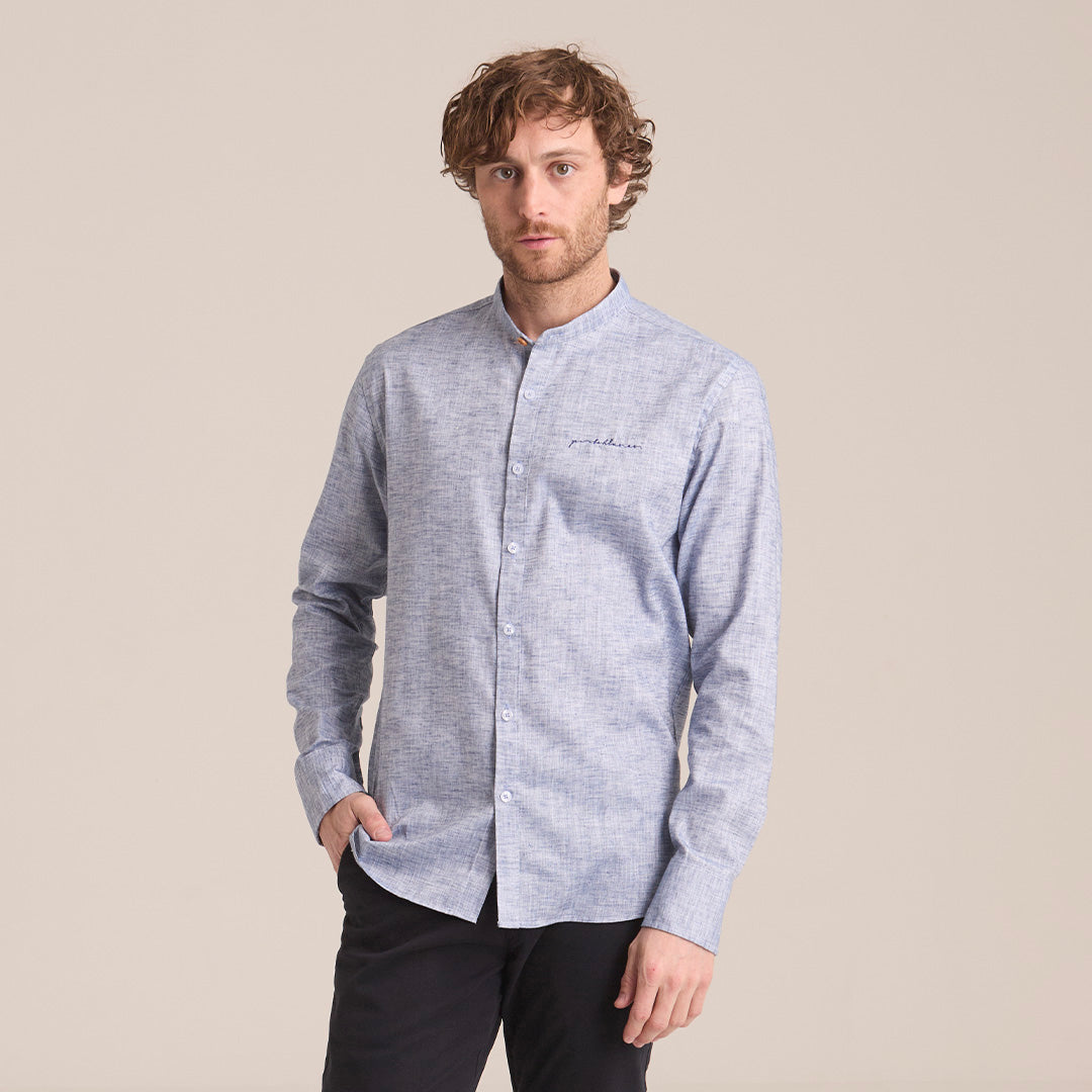 Camisa Azul Grisáceo Mao Manga Larga Hombre
