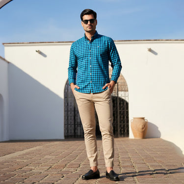 Un clásico renovado: esta camisa de cuadros con cuello button-down combina tradición y elegancia. Ideal para el hombre que busca un toque distinguido en su día a día.
