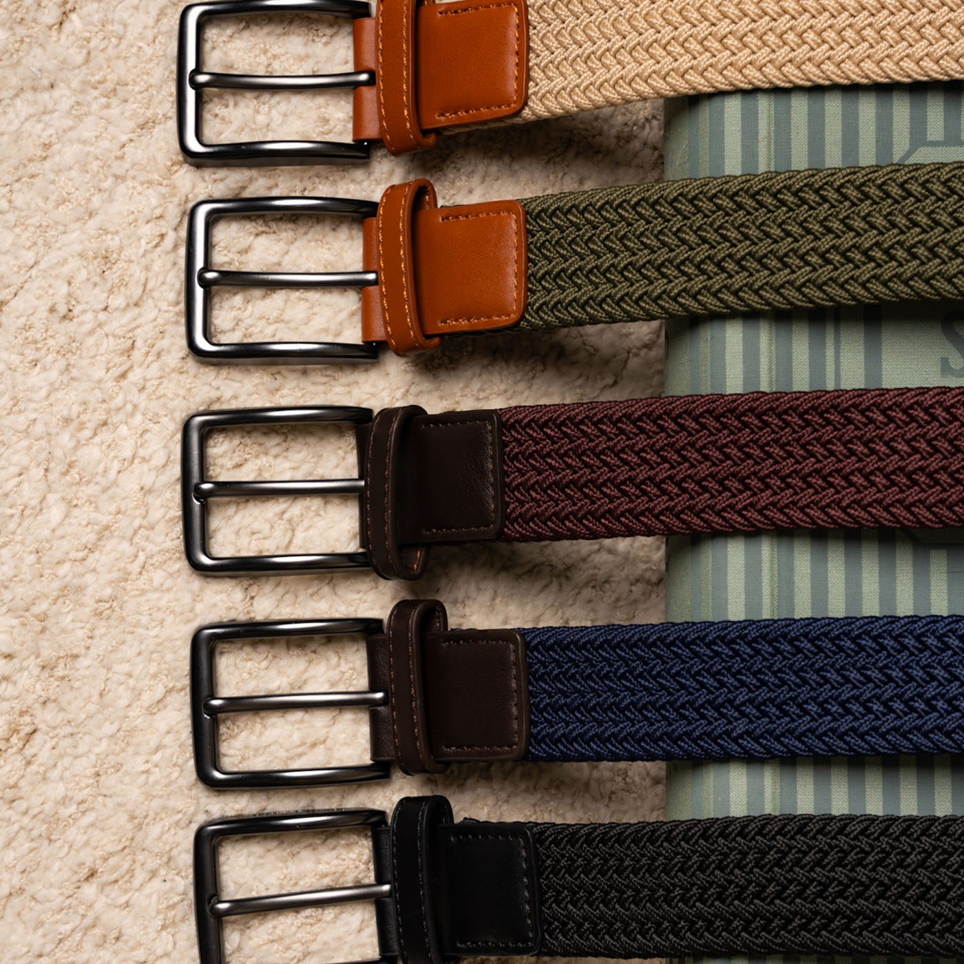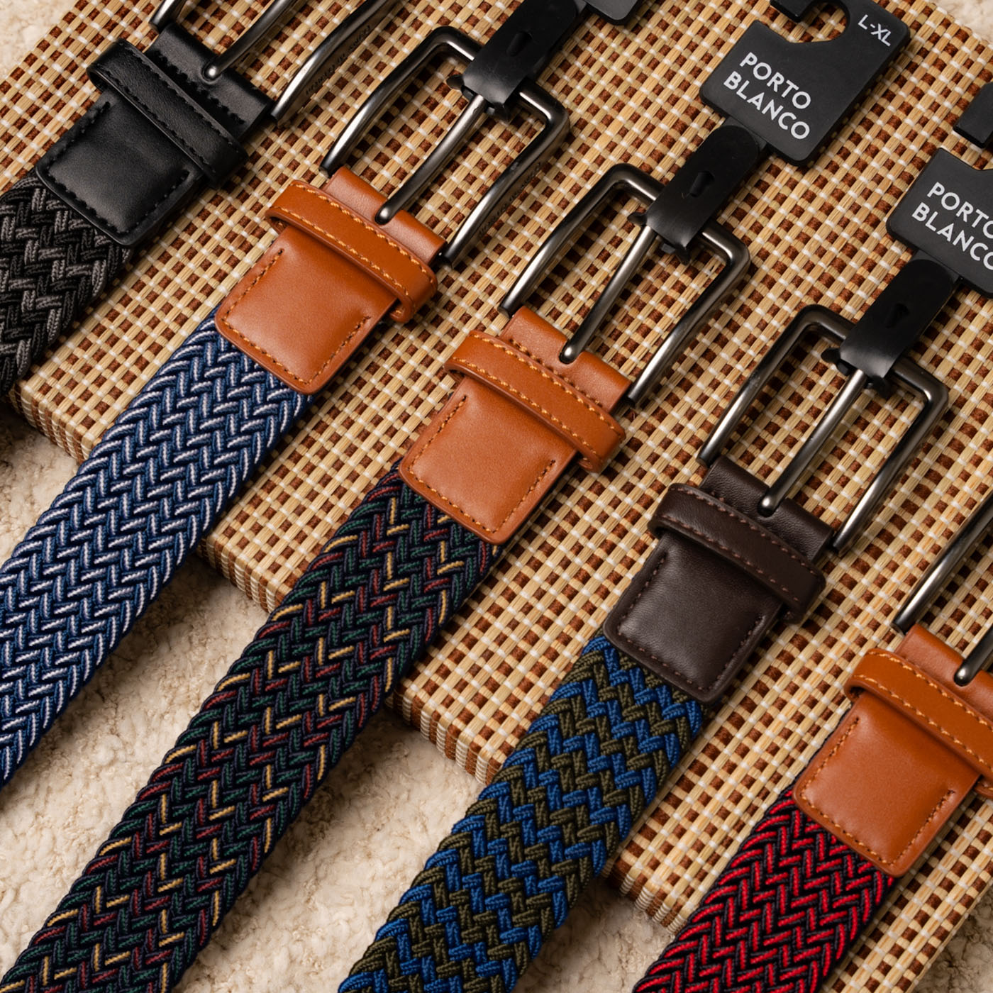 Cinturones elásticos trenzados, cómodos y resistentes.