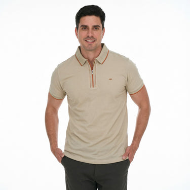 Playera Polo Hombre Beige Manga Corta con cierre