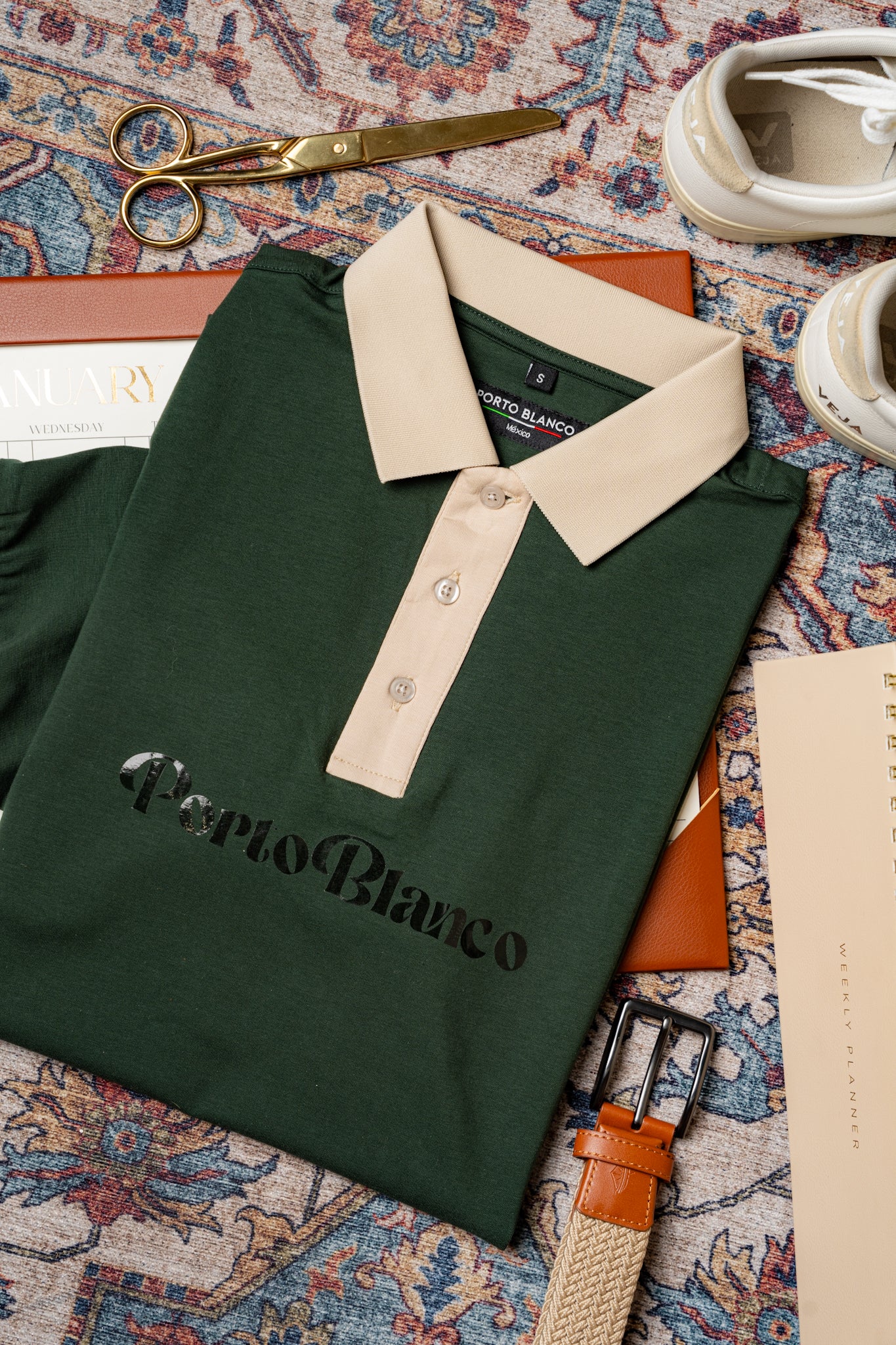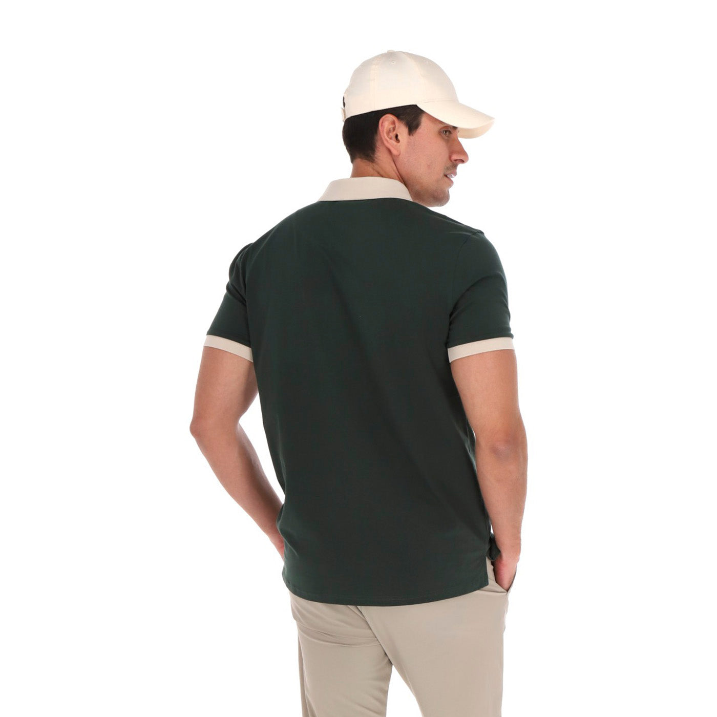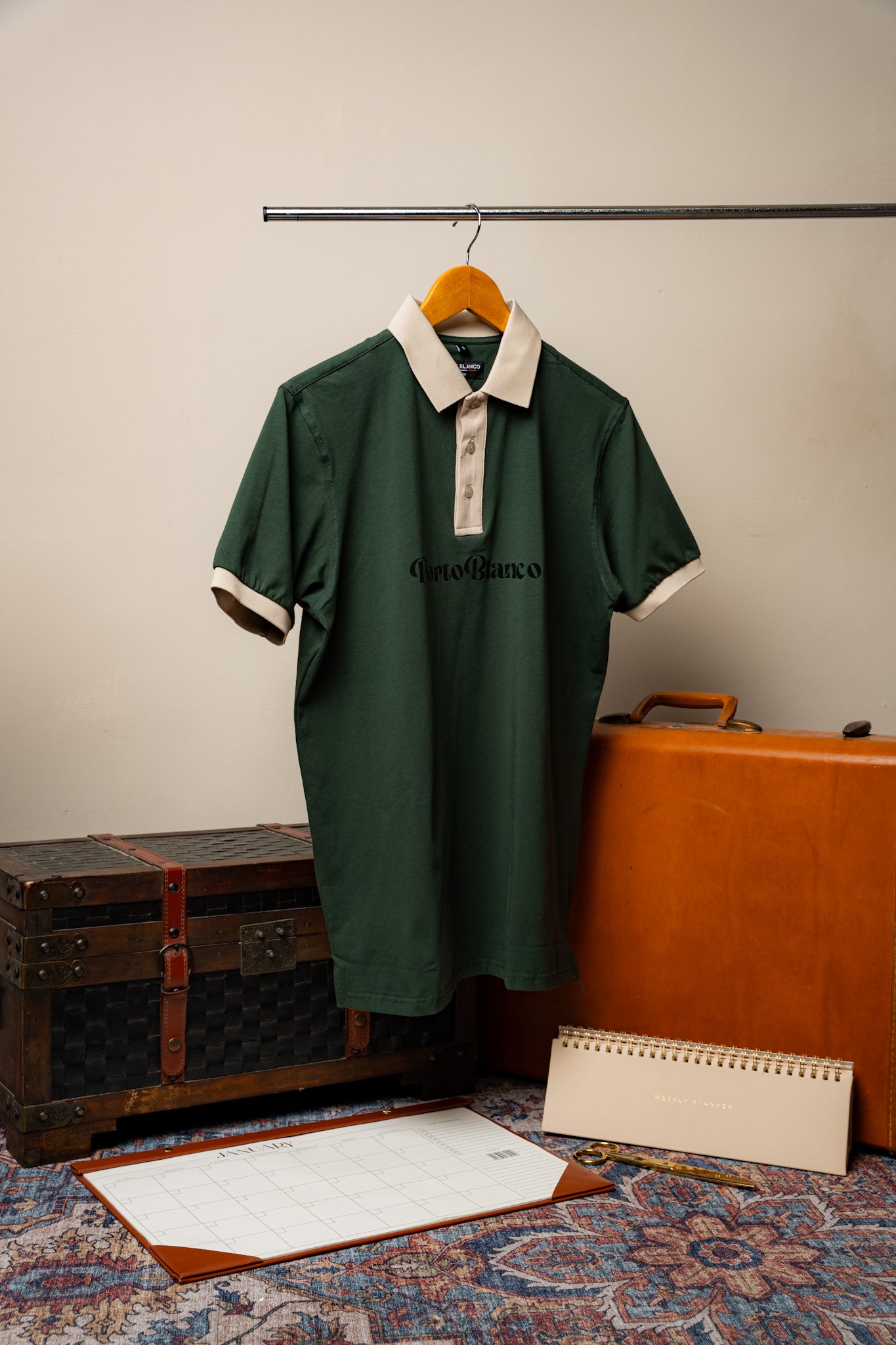 Un clásico moderno. El verde oscuro combinado con detalles en blanco y grises crea un look pulido, fresco y distintivo.