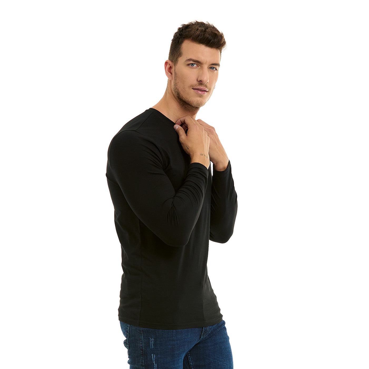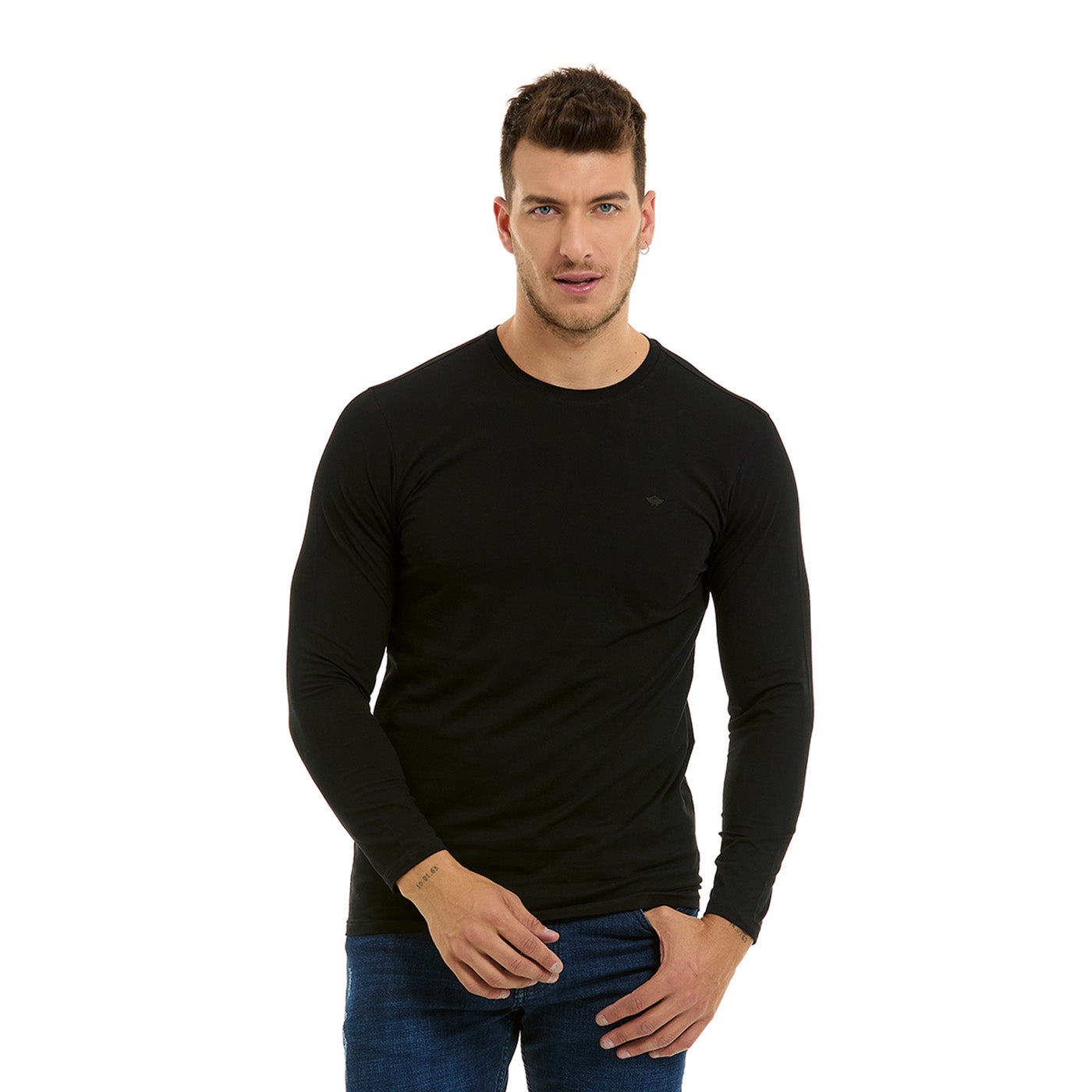 Playera Básica de Hombre Manga Larga Color Negro