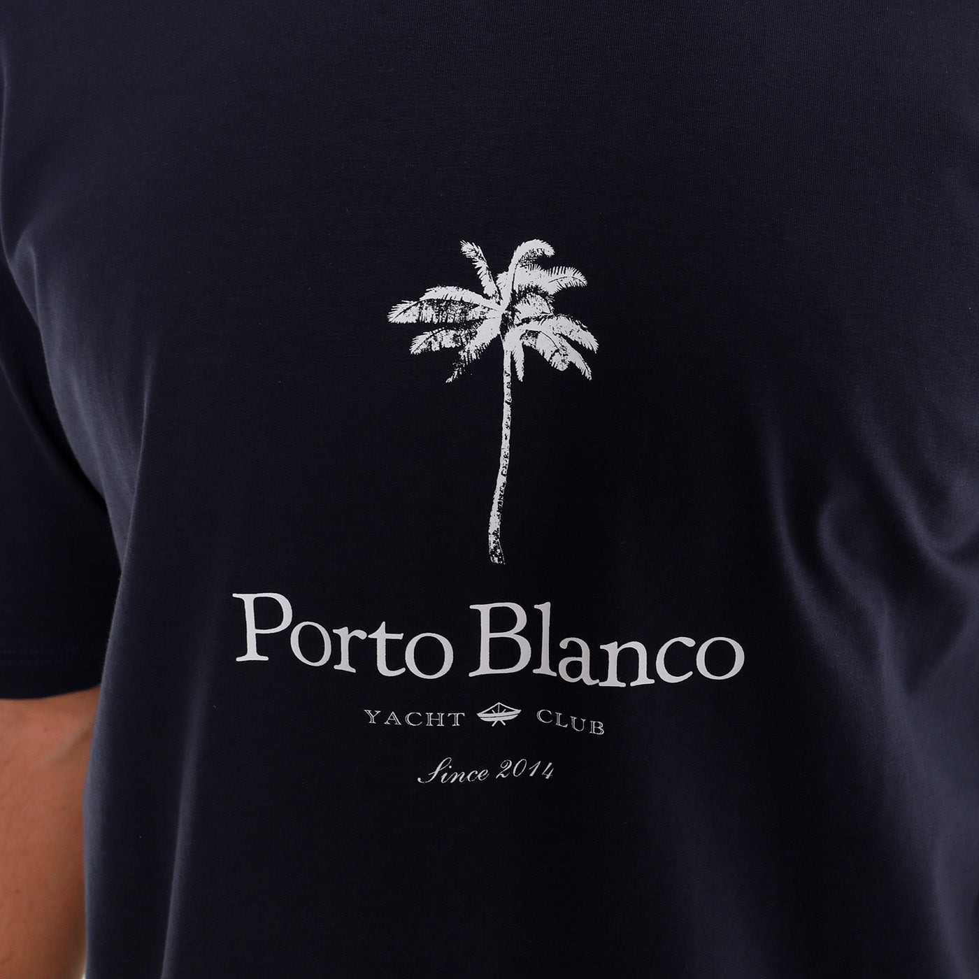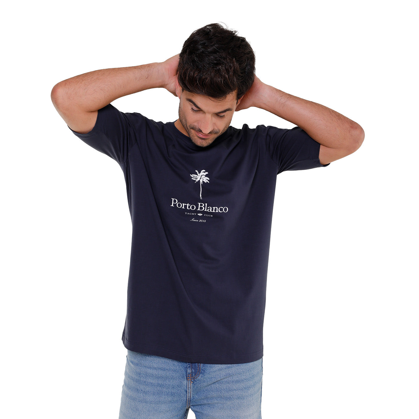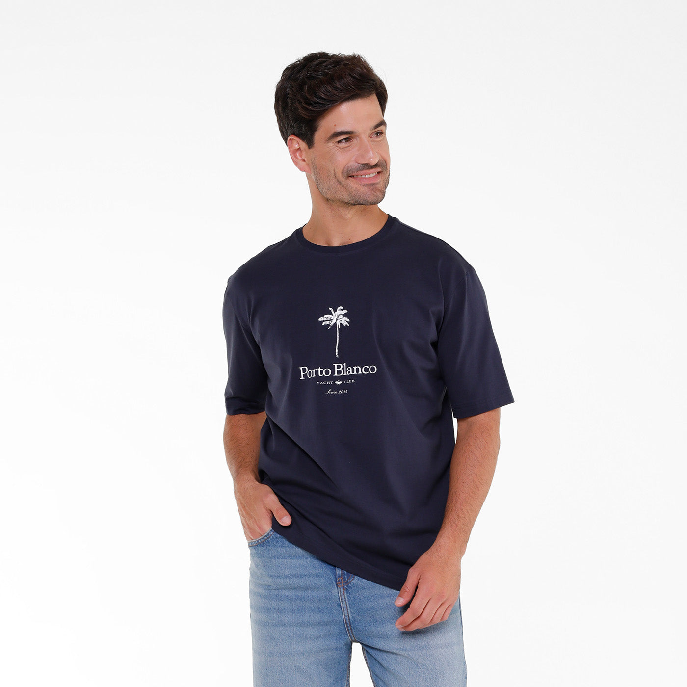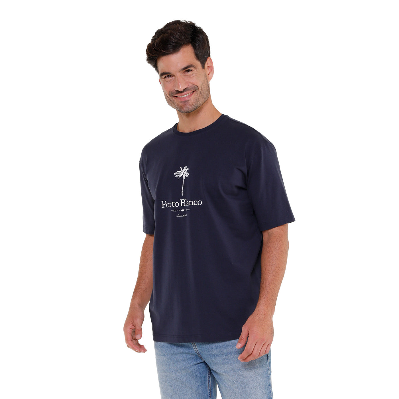 Playera Hombre Porto Blanco Loose Fit Azul Marino Palm Tree
