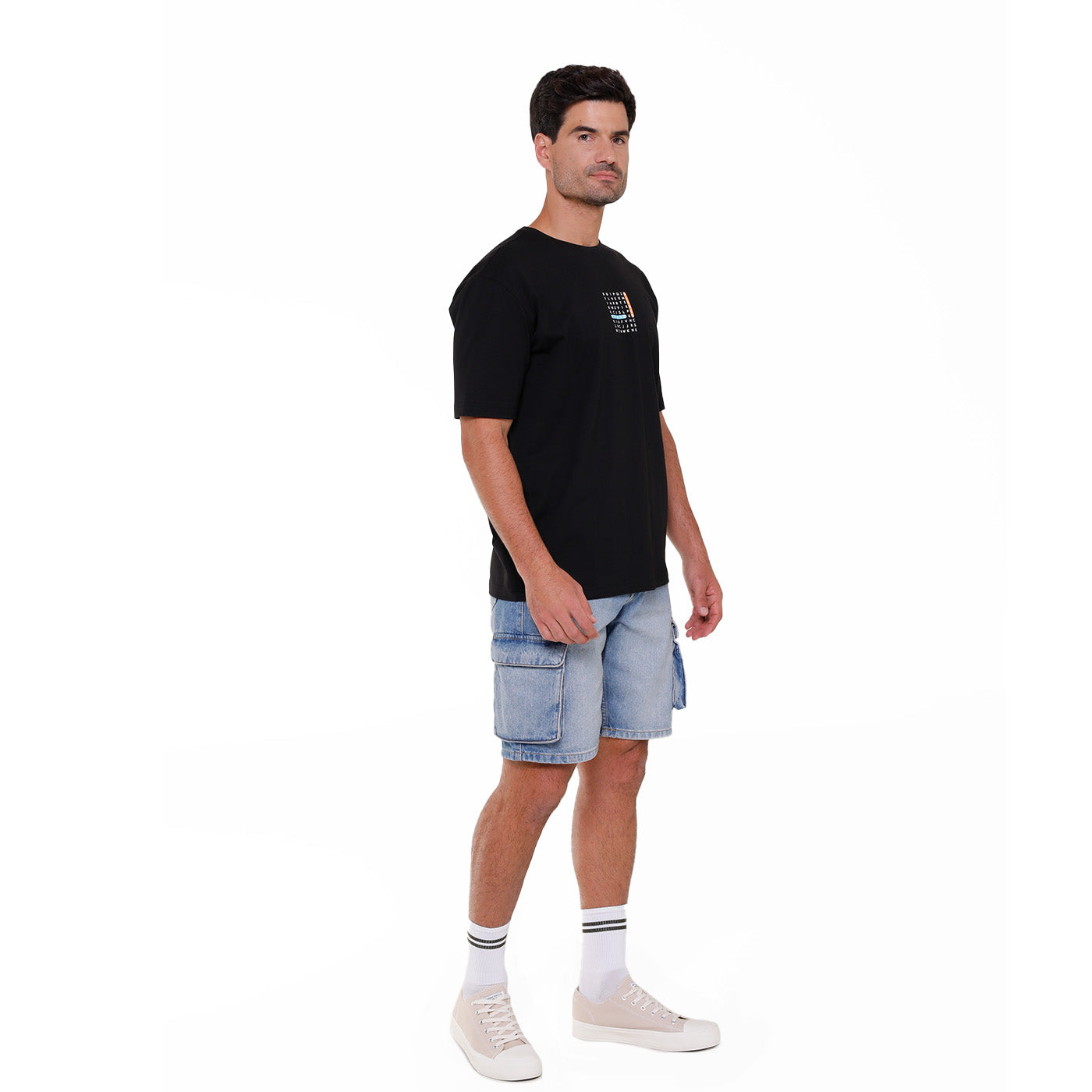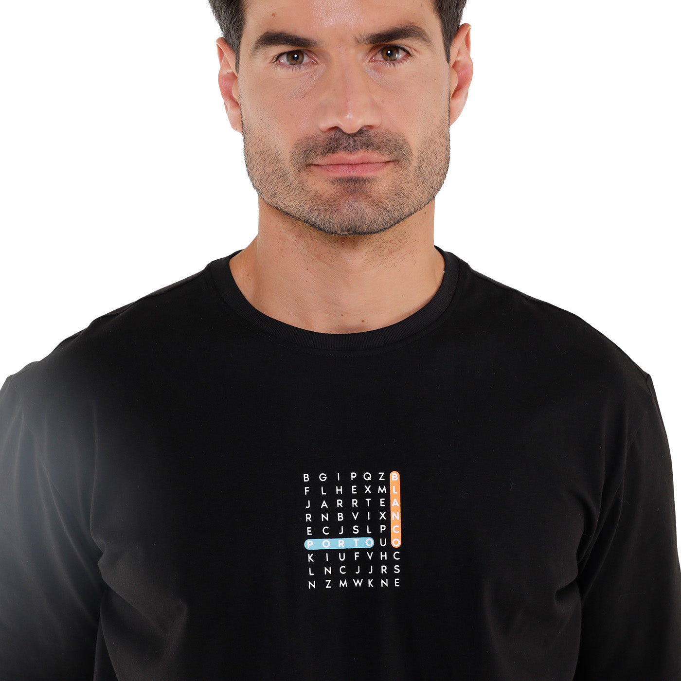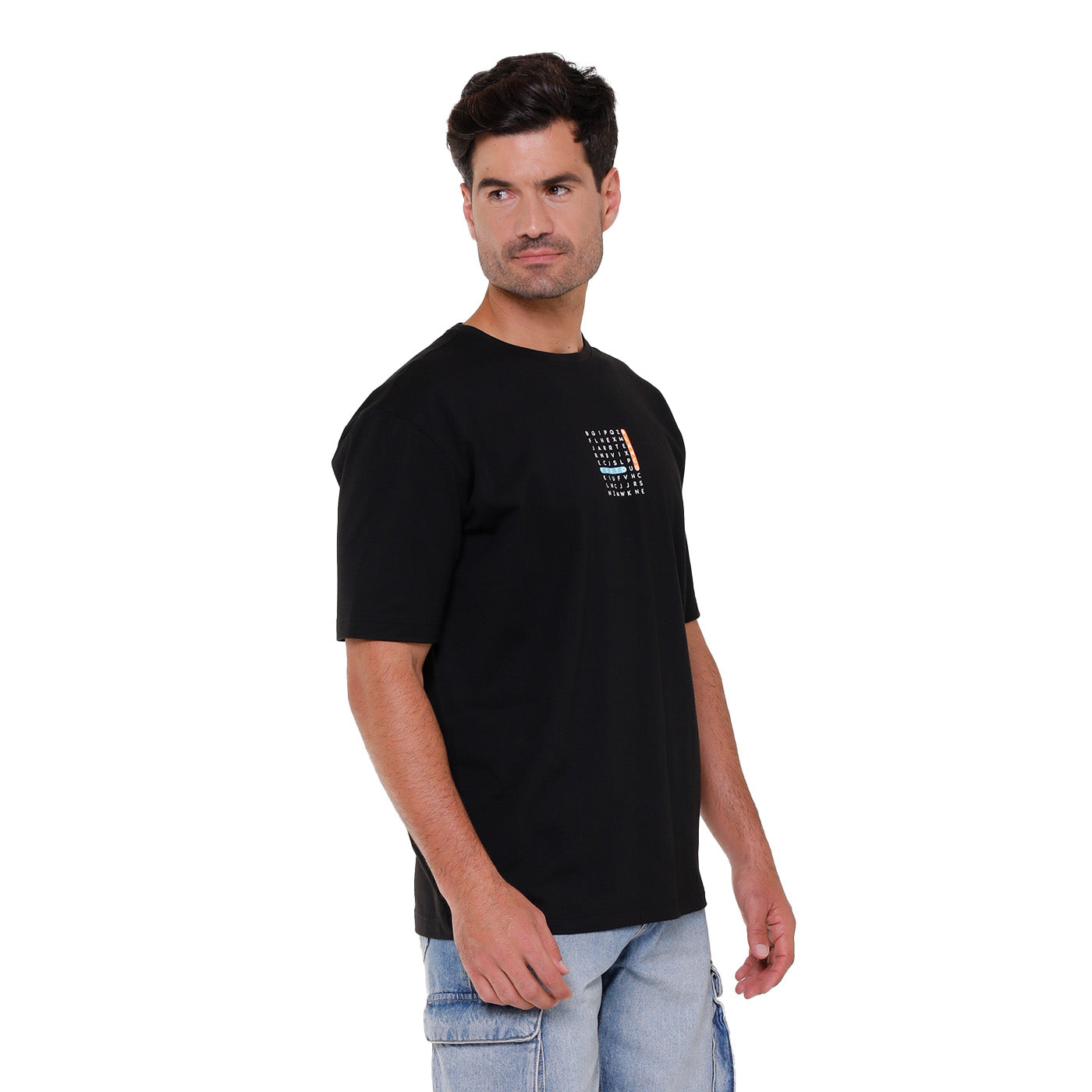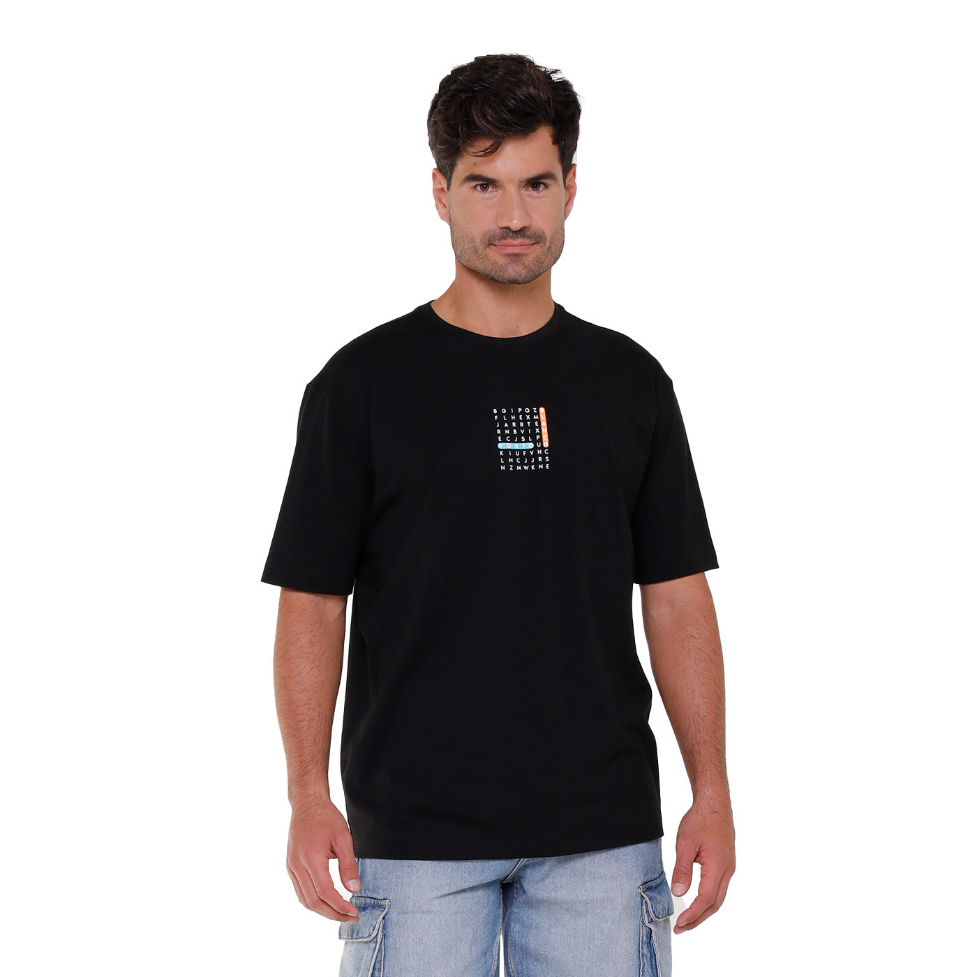 Playera Hombre Porto Blanco Loose Fit Negra con Gráfico Multicolor