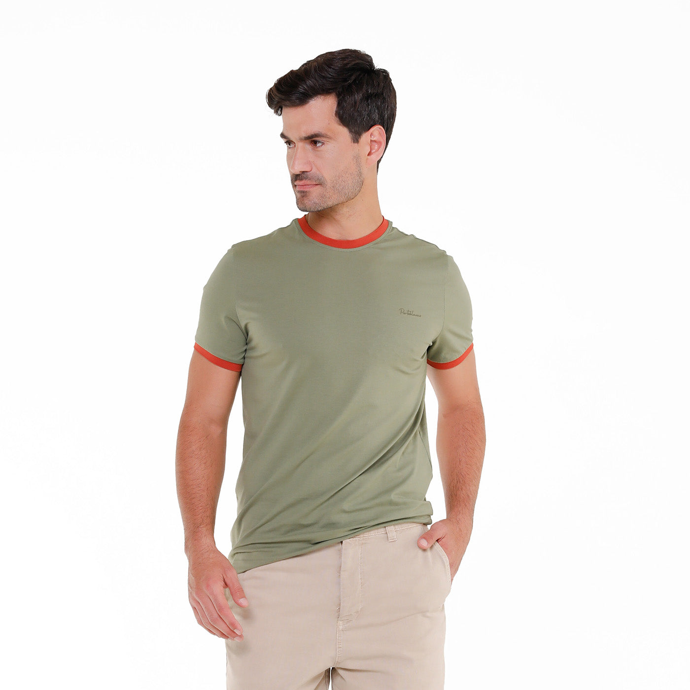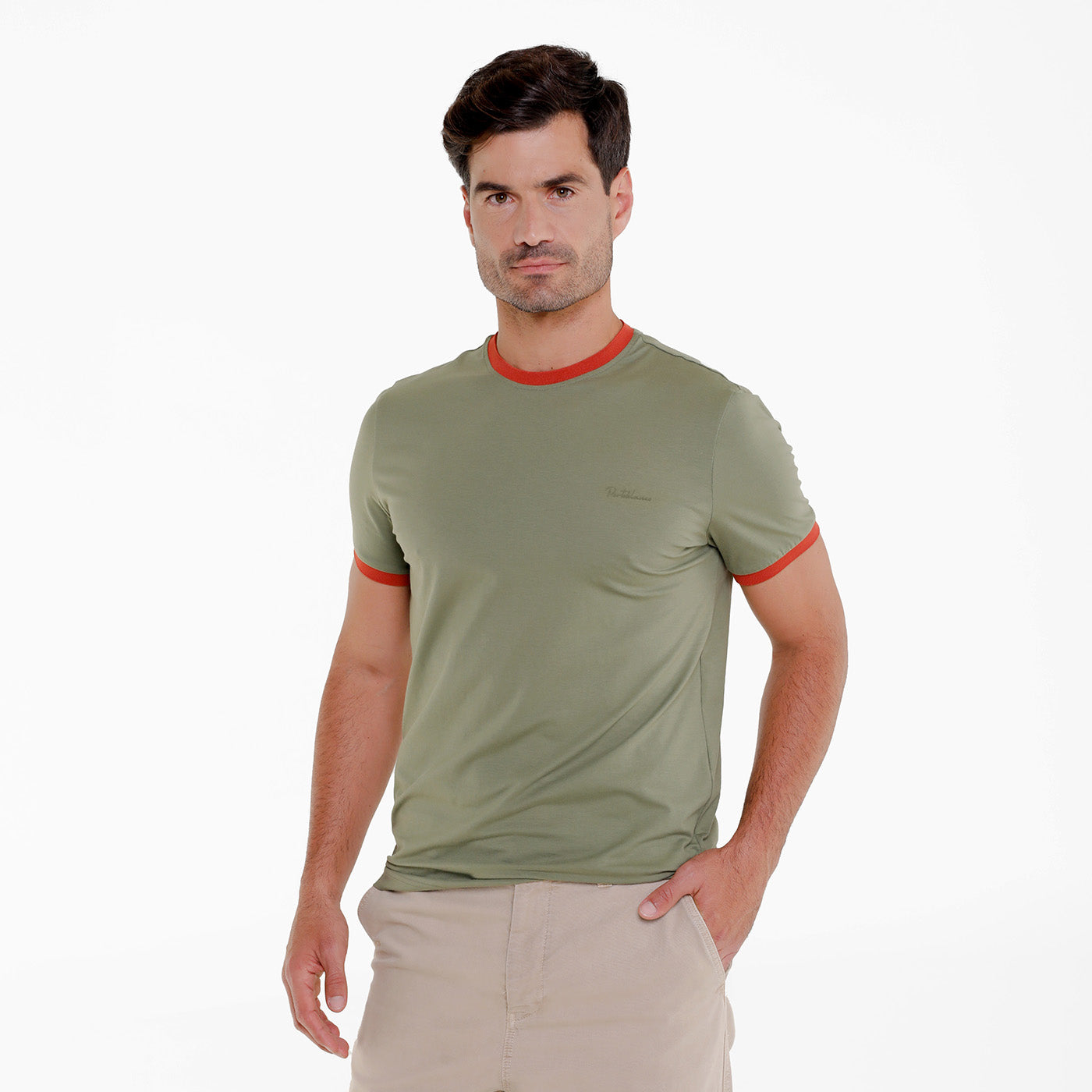 Playera Hombre Verde Cuello Redondo Algodón Stretch