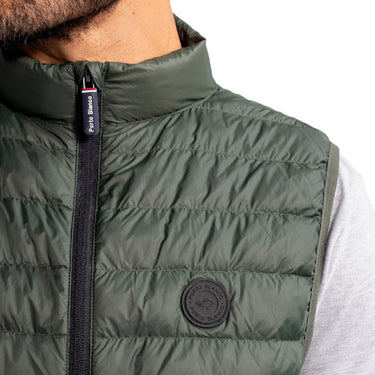 Chaleco ultraligero de pluma de ganso, ideal para climas con vientos, lloviznas, humedad, distintos grados de calor, o frío. Tecnología Weather-Proof, termoregulable, transpirable, realizado con materiales de origen sustentable. Cuello alto, bolsillos laterales con cierre, bajo con elástico, cierre frontal con cremallera.
