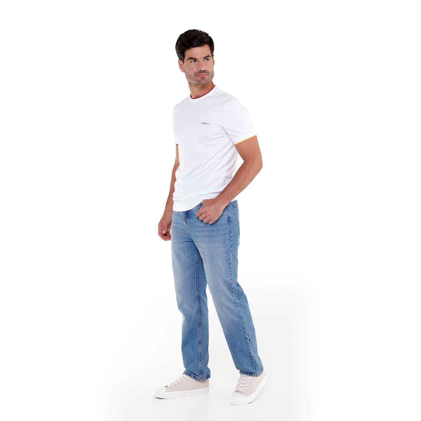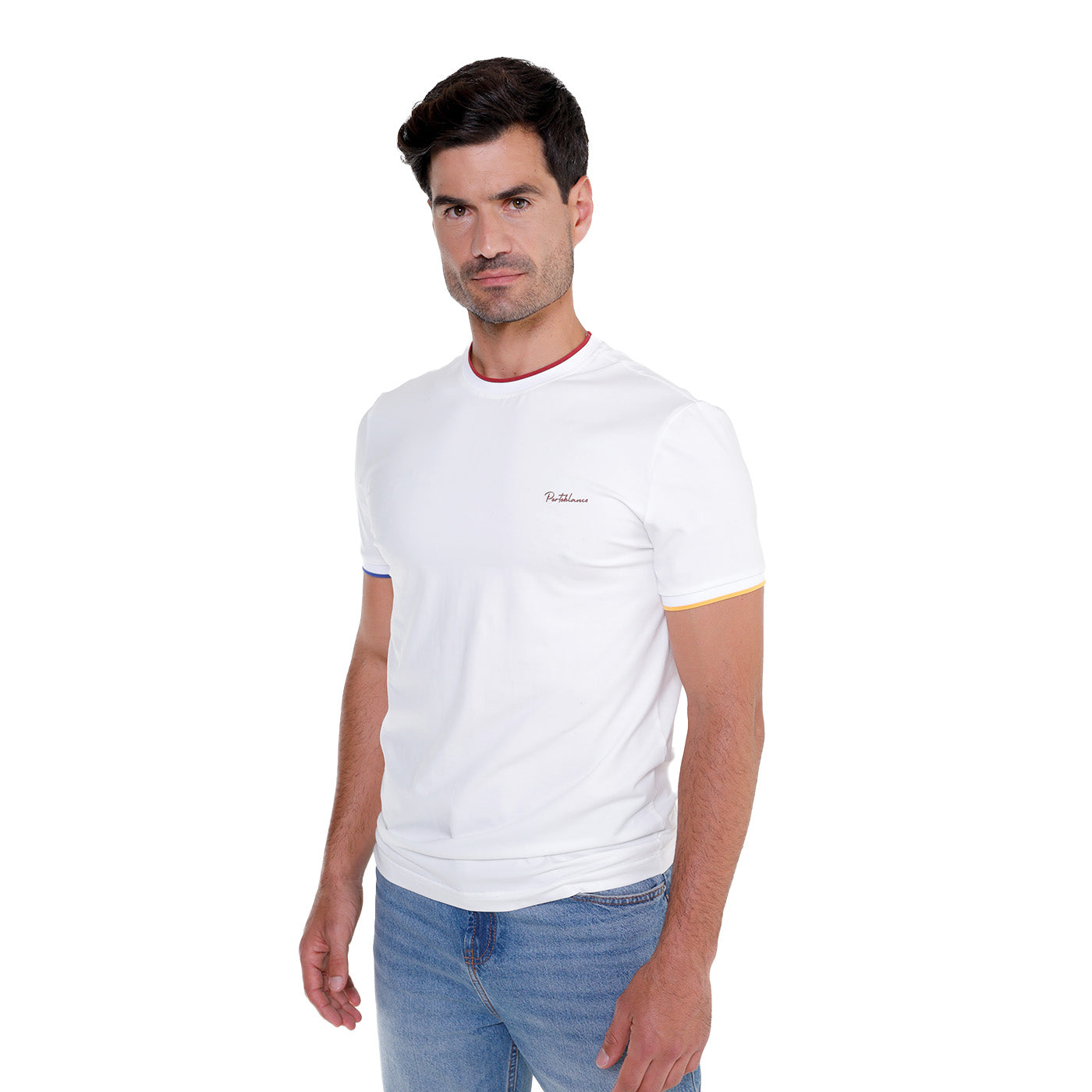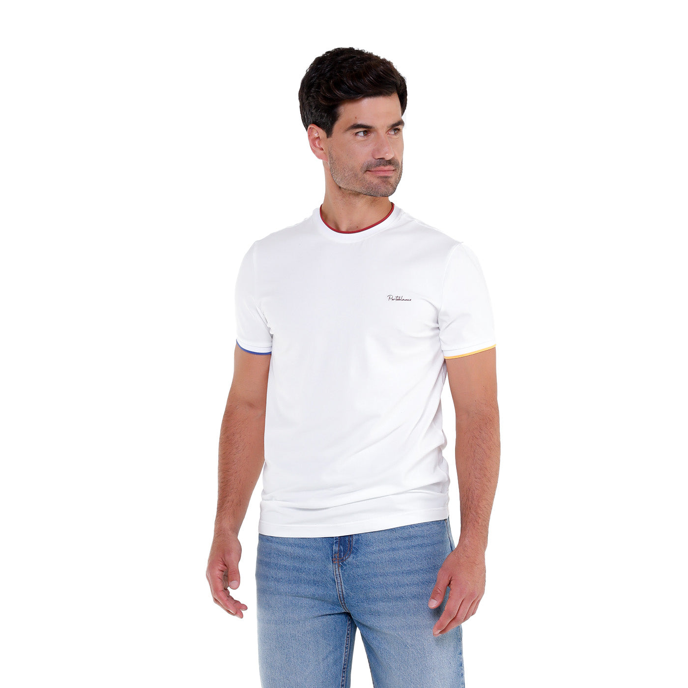 Playera Hombre Blanca Cuello Redondo Algodón Stretch