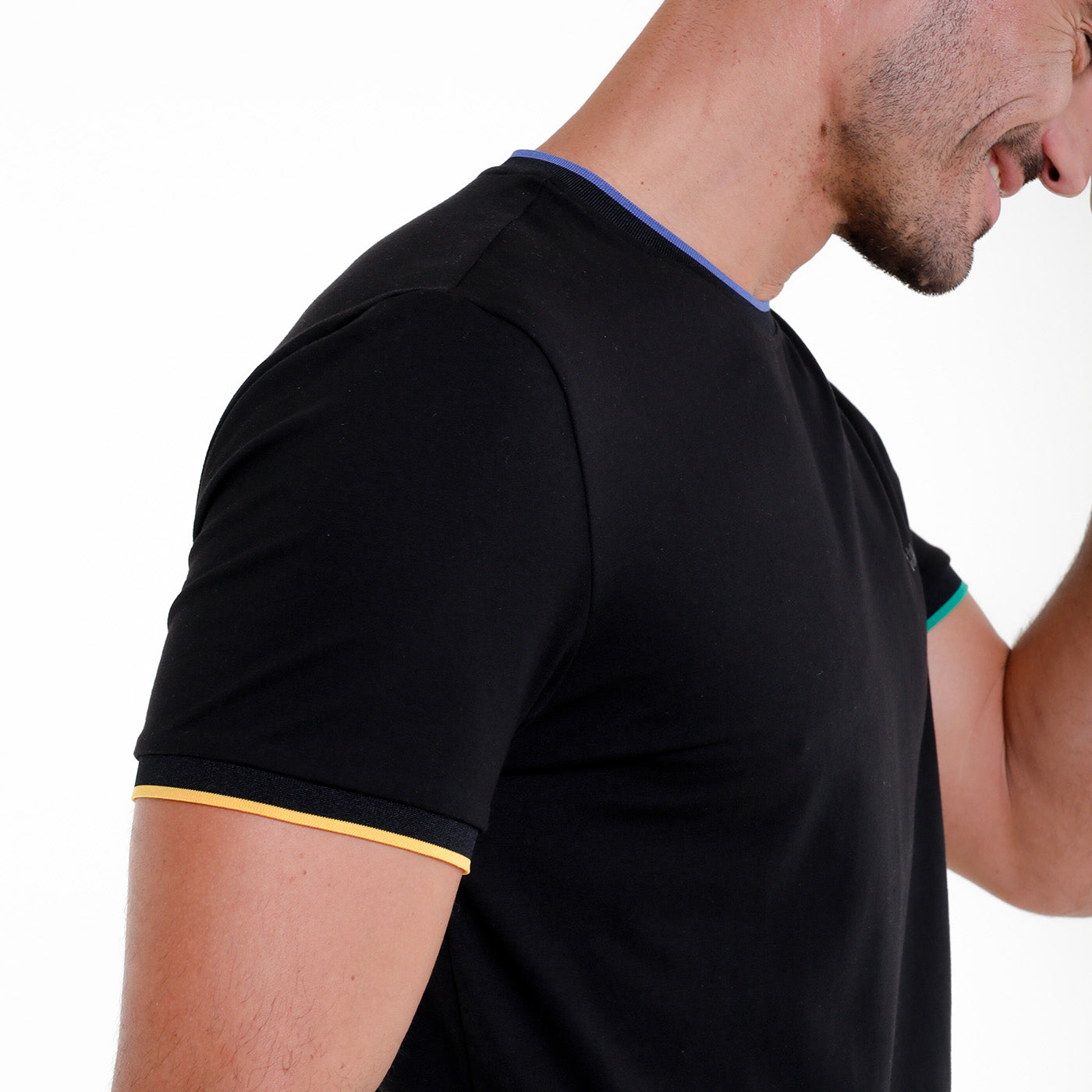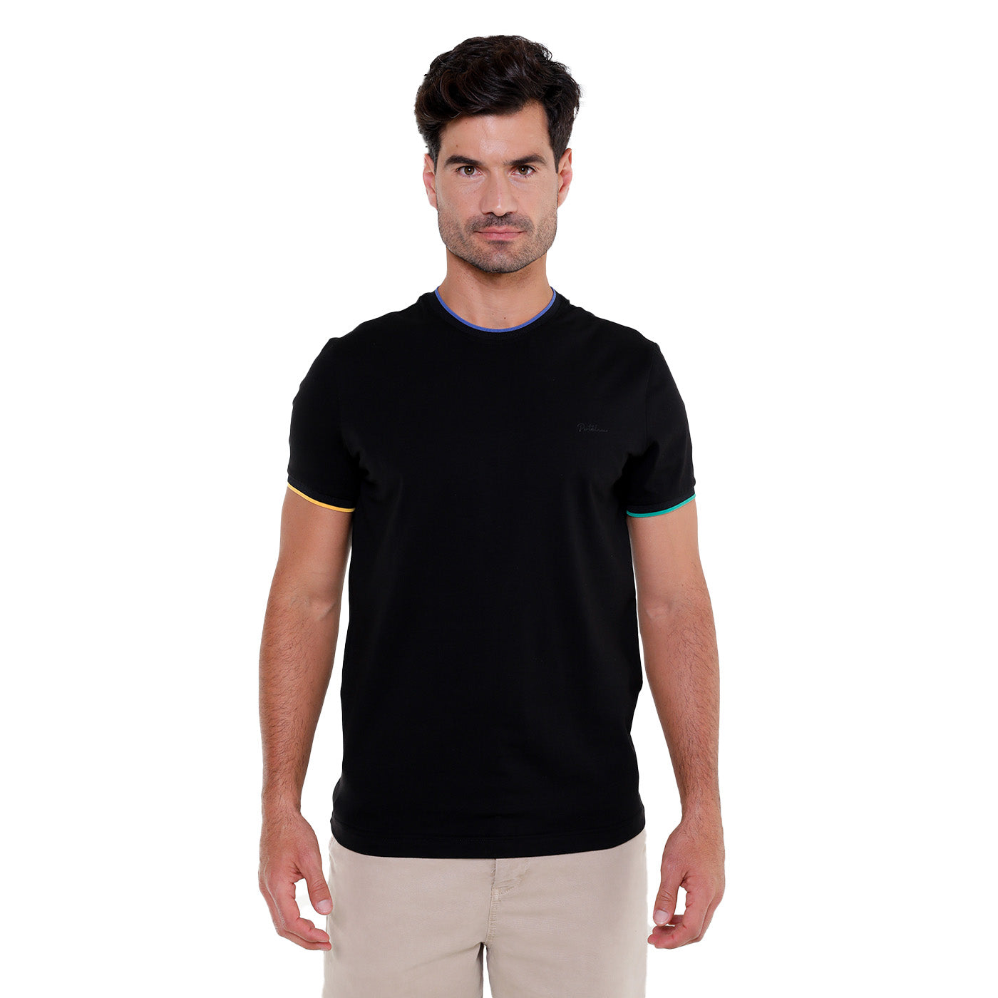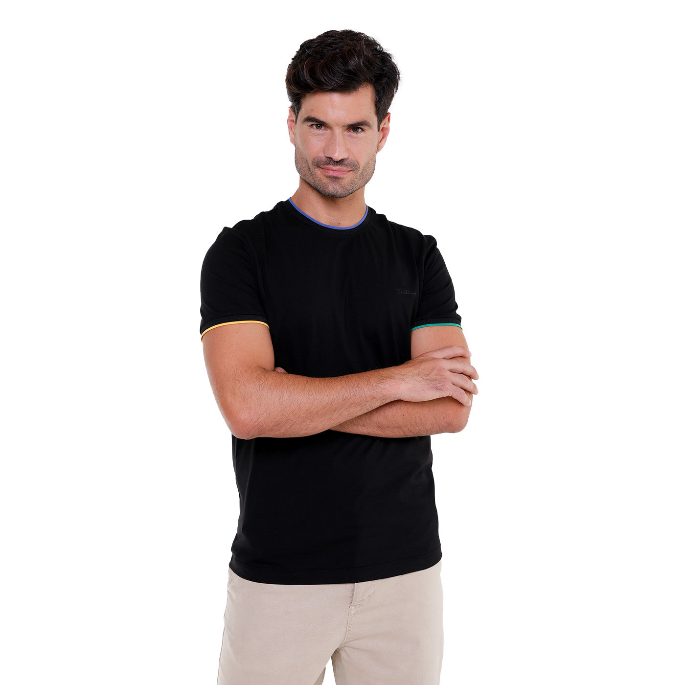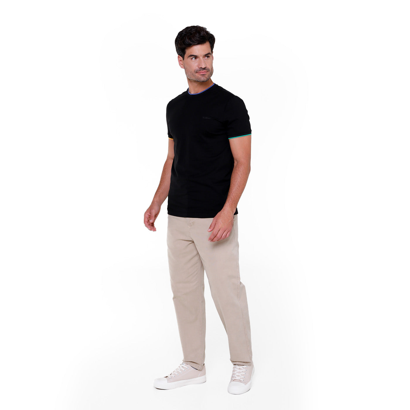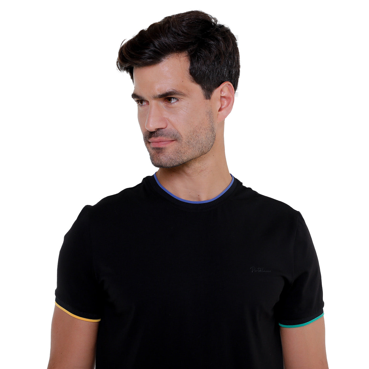 Playera Hombre Negra Cuello Redondo Algodón Stretch