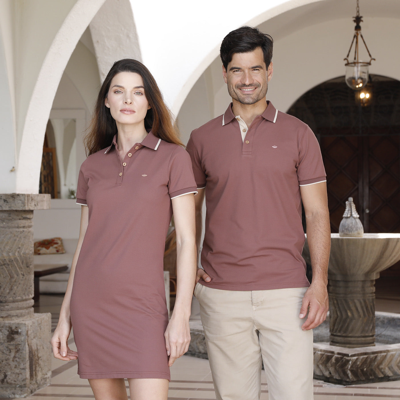 Vestido Polo Dama Porto Blanco Café Algodón Stretch